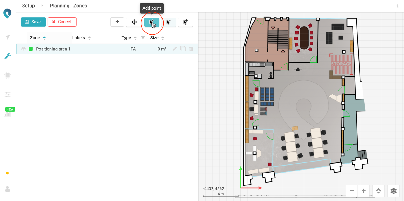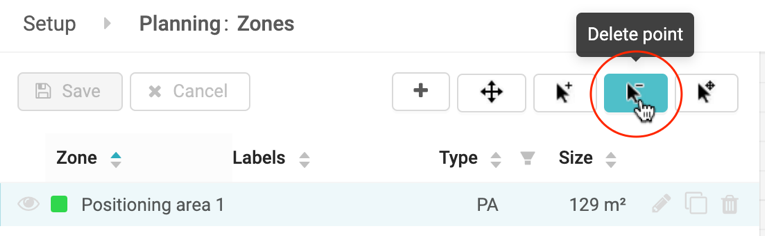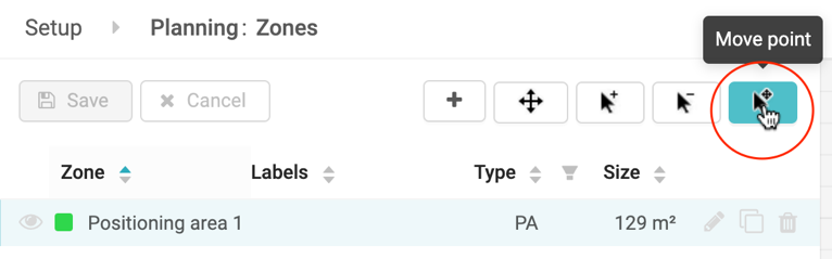 After clicking the Add button the zone will be created and the Add point tool will be selected: