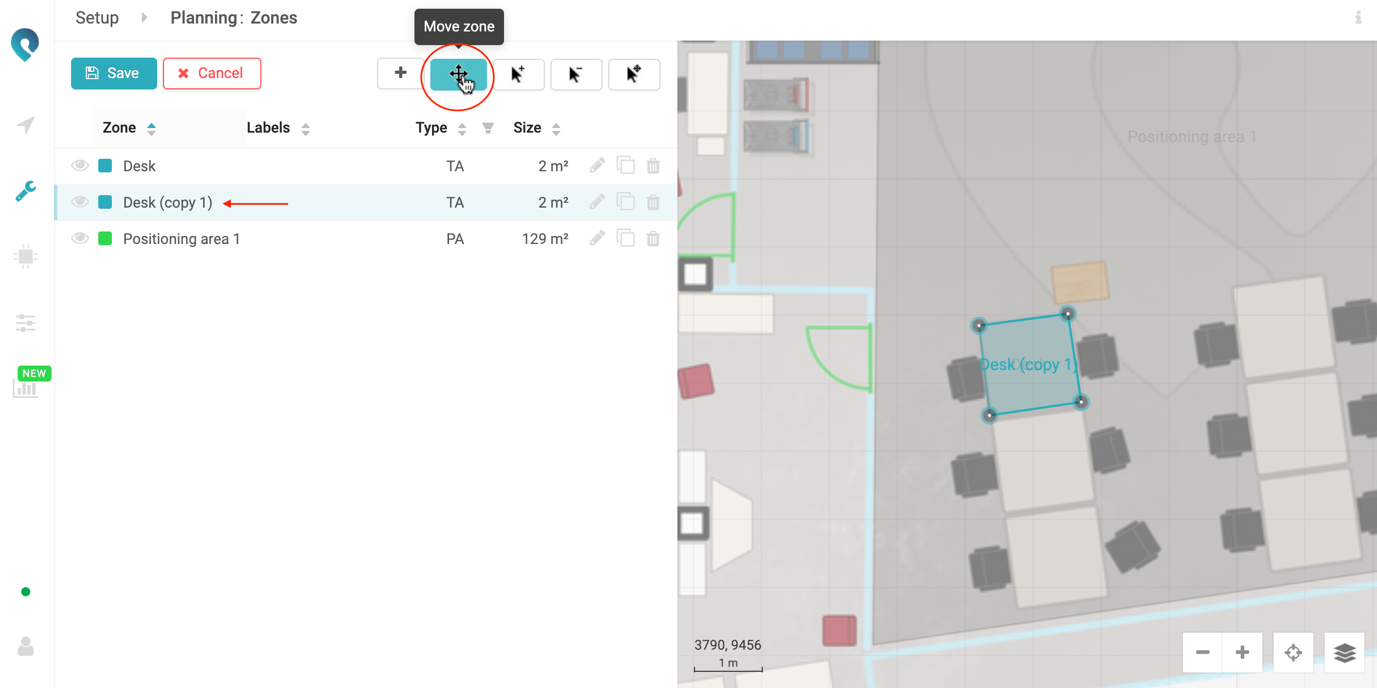 It is also possible to copy zones. This can be convenient when you have multiple zones with the same shape. To copy a zone: