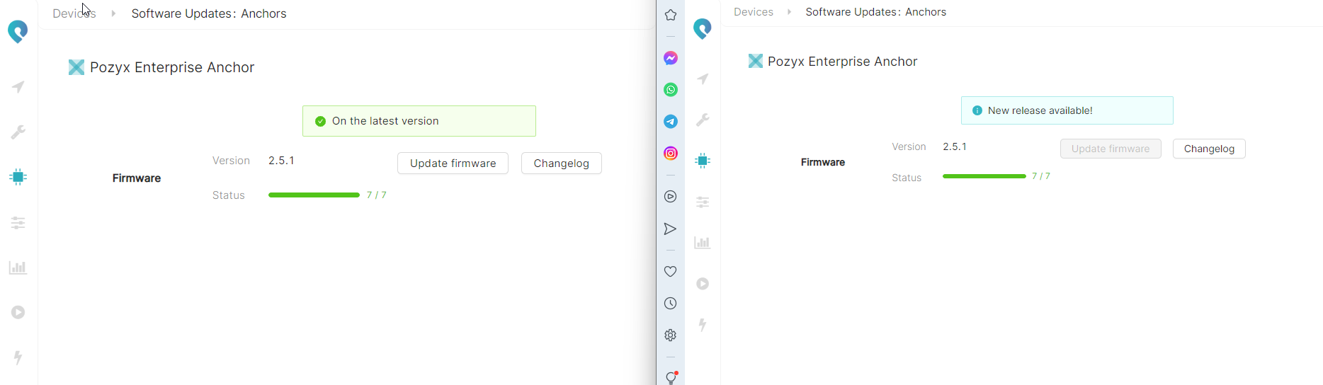 Both the positioning server and Anchors update pages are different on the local application since the both of those updates require an internet connection.