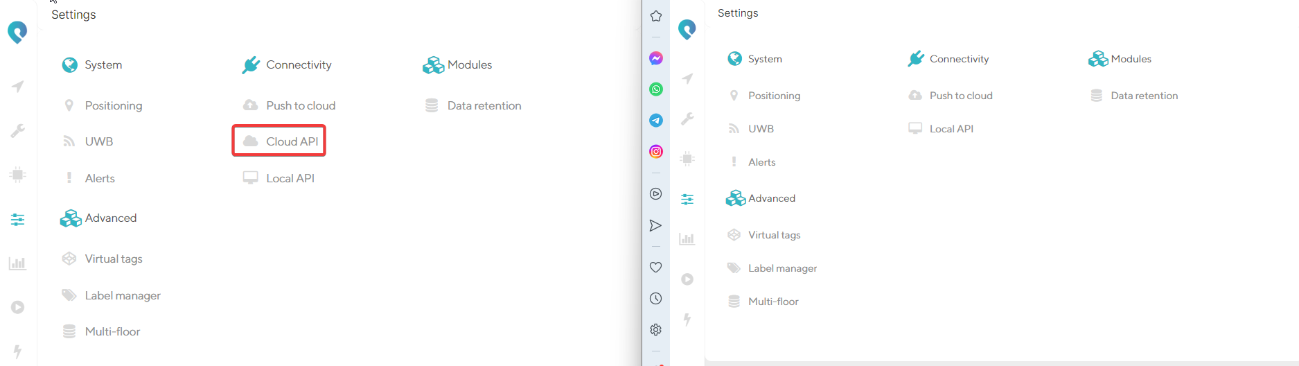 On the local webapp, the Cloud API page is not available. This page is used to gain access to the MQTT cloud API and contains the username and topic needed for the connection