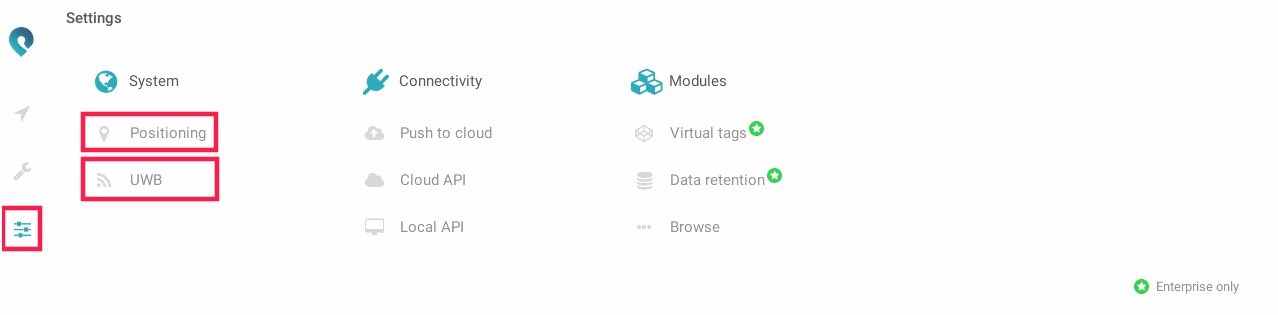 Not every installation is the same, and sometimes you will want to tweak some of the positioning settings to get the best result. You can navigate to both positioning settings and UWB settings in the ‘Settings’ page of the Creator Controller.