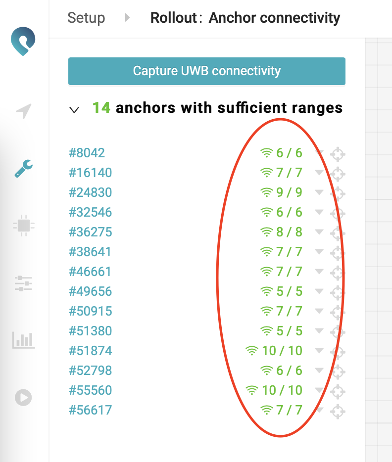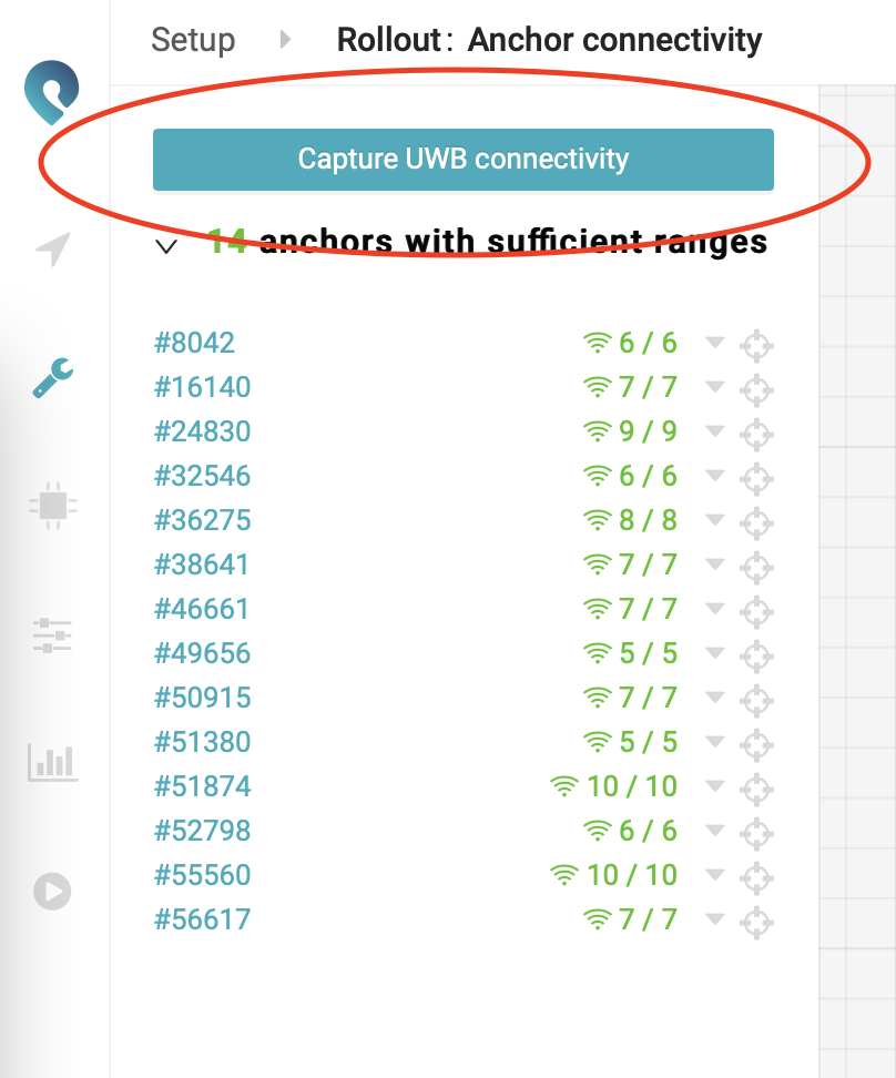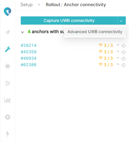 Go to the Anchor connectivity page: https://app.pozyx.io/setup/rollout/connectivity and press the Capture UWB connectivity button: